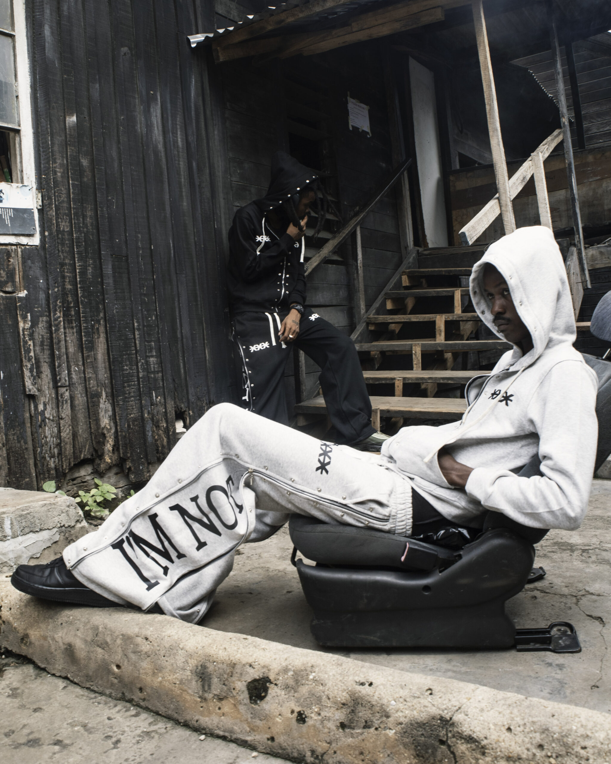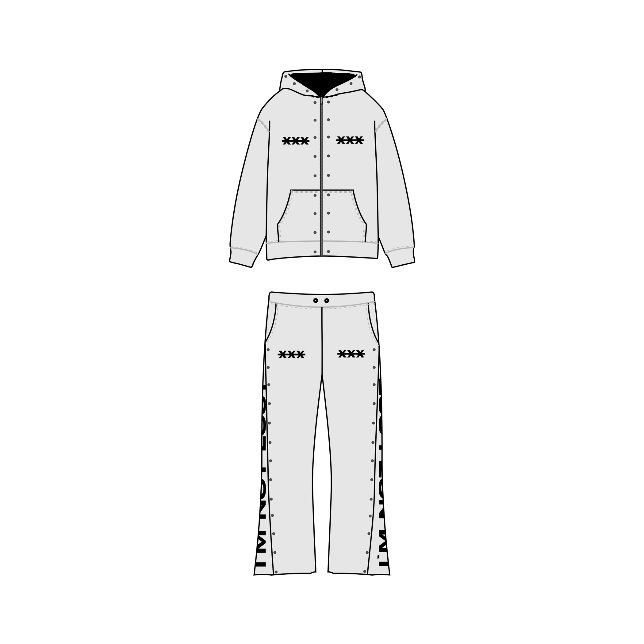 The XploreFW “I’M NOT LOST” Stud Set brings together two statement pieces — the hoodie and stud pants — designed for bold expression and elevated streetwear presence. The hoodie features dual XPLOREFW -XXX- chest logo, silver studs tracing the zipper to the hood, and a striking “I’M NOT LOST” back print. Paired with the stud pants, built with side zippers that flare open to reveal the hidden “I’M NOT LOST” print and full-length studs along both zips, this set delivers a unified, standout look from head to toe.